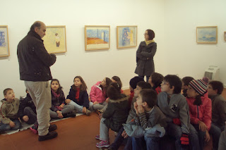 O Urbano explicou,detalhadamente cada ilustração que fez, às crianças e estas também aproveitaram para lhe colocar algumas questões sobre as mesmas, sendo a questão mais colocada sobre o material utilizado.